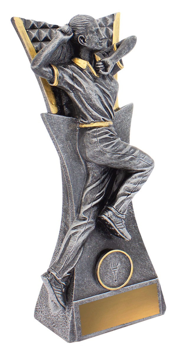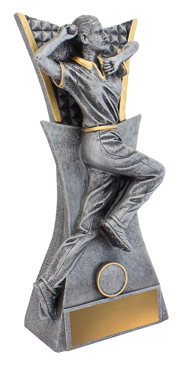Celebrate sporting achievement with a cricket trophy that captures movement and skill. This resin award presents a female bowler mid action, highlighted in a sophisticated silver and gold palette. Crafted for lasting recognition, its dynamic design and sturdy base make it a trusted choice for honouring excellence in women's cricket.