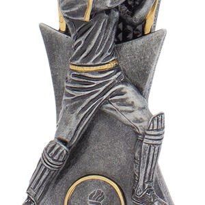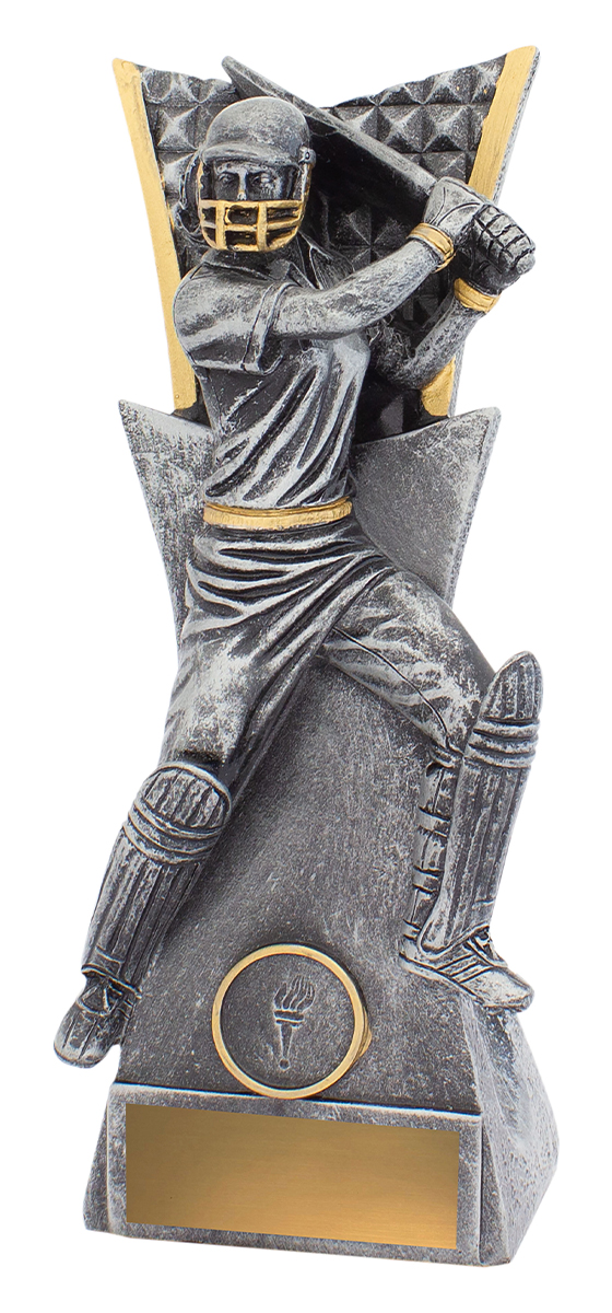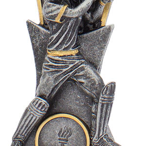Celebrate outstanding achievement with this striking cricket trophy, crafted in durable resin and finished in elegant silver and gold tones. Featuring a female cricketer in full batting stance and protective gear, this award honours excellence and dedication. The torch emblem at the base adds a distinctive touch, making it an ideal choice for cricket trophies recognising skill and commitment in the sport.