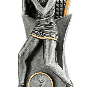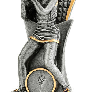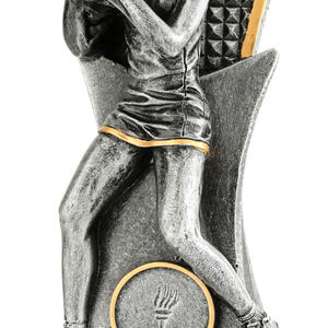 Crafted with precision in resin, this trophy features a netball player poised with a ball atop a distinctive triangular base. Elegant gold accents and a torch emblem highlight its celebratory purpose, making it an ideal choice for netball awards.