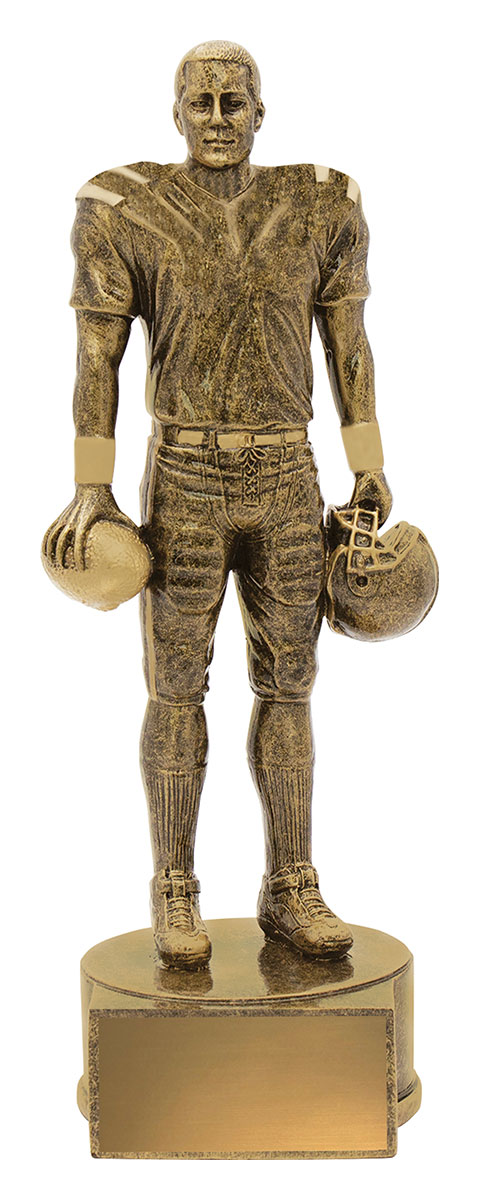 Crafted from resin with a rich bronze finish, this trophy features a detailed gridiron player holding a ball and helmet. ItÂ’s a timeless award celebrating effort, leadership, and excellence on the field.