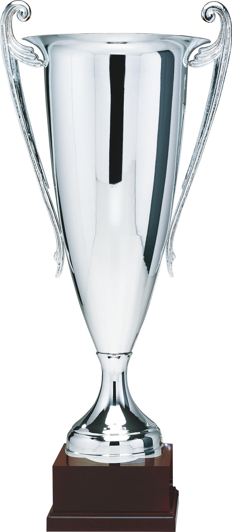 The silver trophy cup is an enduring symbol of achievement, crafted for discerning recognition for any event. Its polished silver metal cup, complete with graceful handles, rises from a robust black wooden base, creating a striking and timeless presentation.