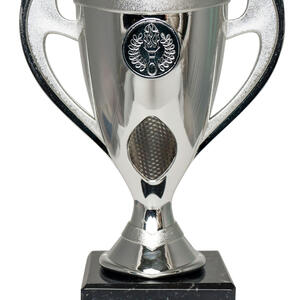 This plastic cup trophy from the budget cups range pairs a sleek silver finish with classic handles and a bold torch emblem, making it a versatile choice for recognising sports achievements. The trophy is crafted from plastic, set on a black marble base for a professional presentation. A blank engraving plate allows for personalisation, ensuring each achievement is memorable and distinct.