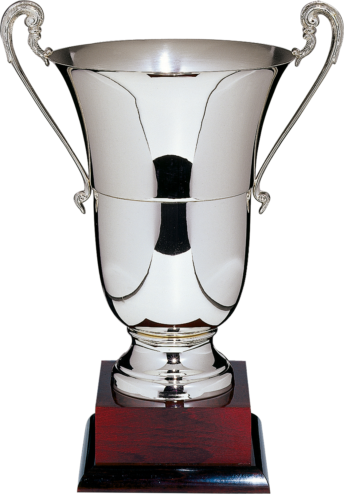 This large trophy cup stands out with its silver plated bell cup design and polished dual handles, offering a refined statement for ongoing recognition. The substantial height is anchored by a two tier black timber base, combining durability with classic elegance.