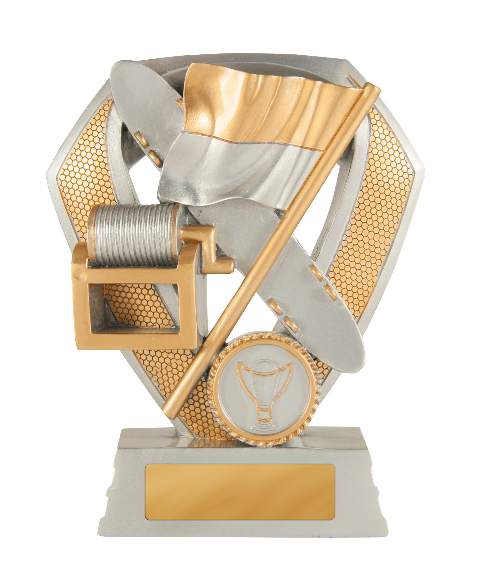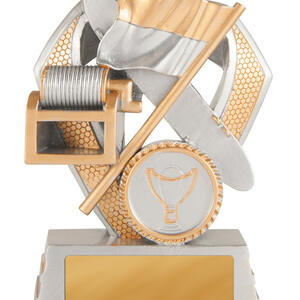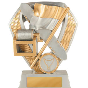 Celebrate achievement in surf lifesaving with this elegant surf lifesaving trophy, crafted to recognise dedication and teamwork. Featuring a bold shield design, flag, and trophy emblem, its gold and silver finish stands out on a sturdy base.