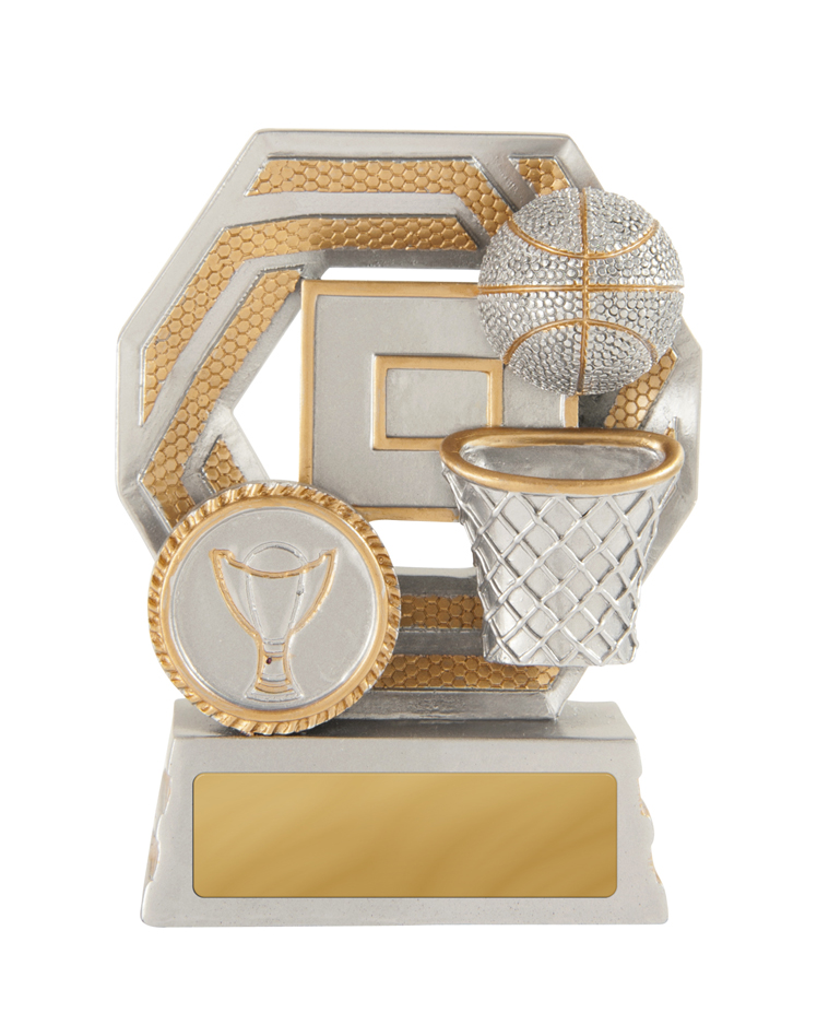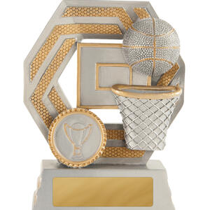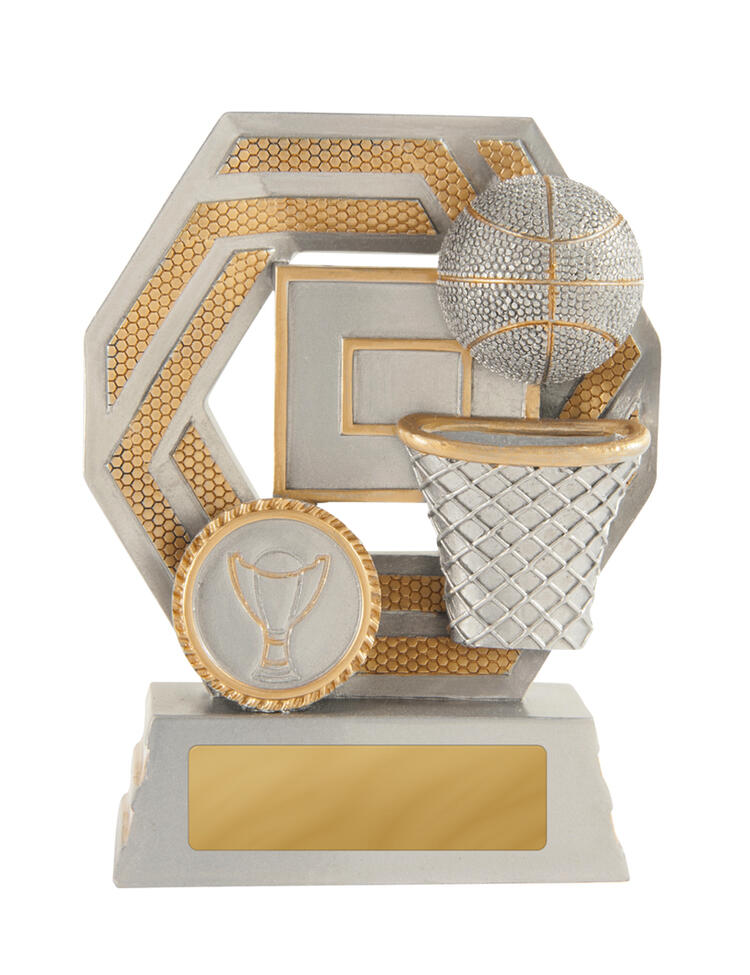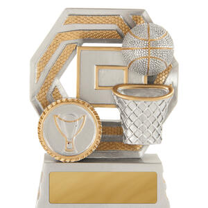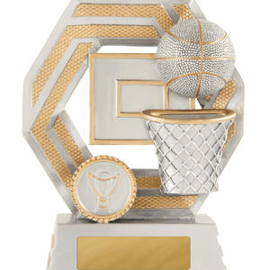 The Titan Series Basketball Trophy stands out with its striking two tone silver and gold finish, crafted from resin for lasting quality. Ideal for basketball awards, this substantial trophy is designed to honour standout achievements on the court.