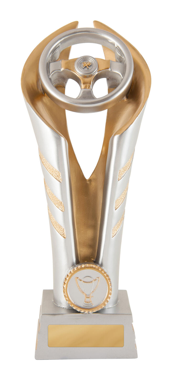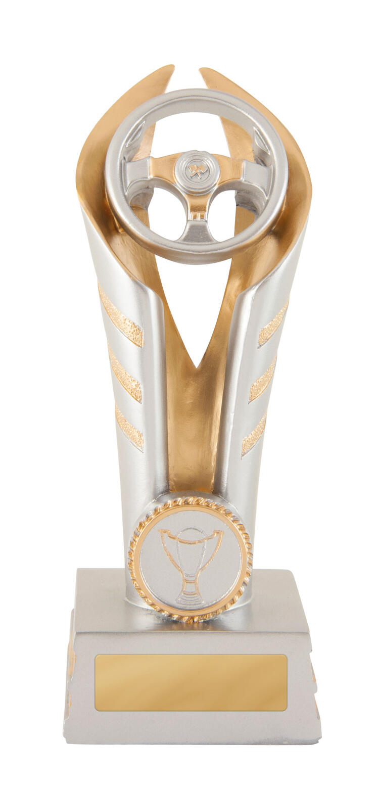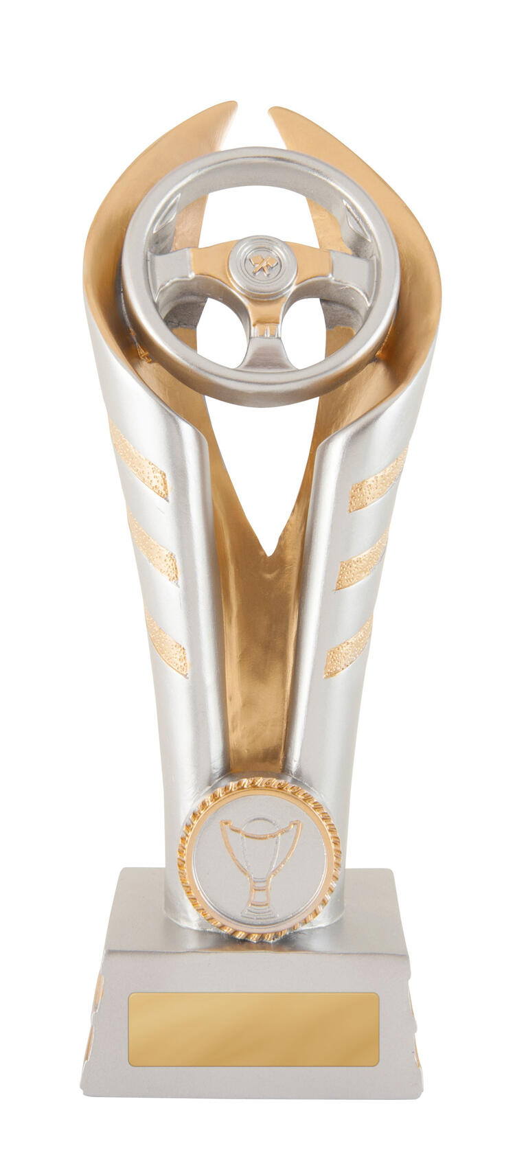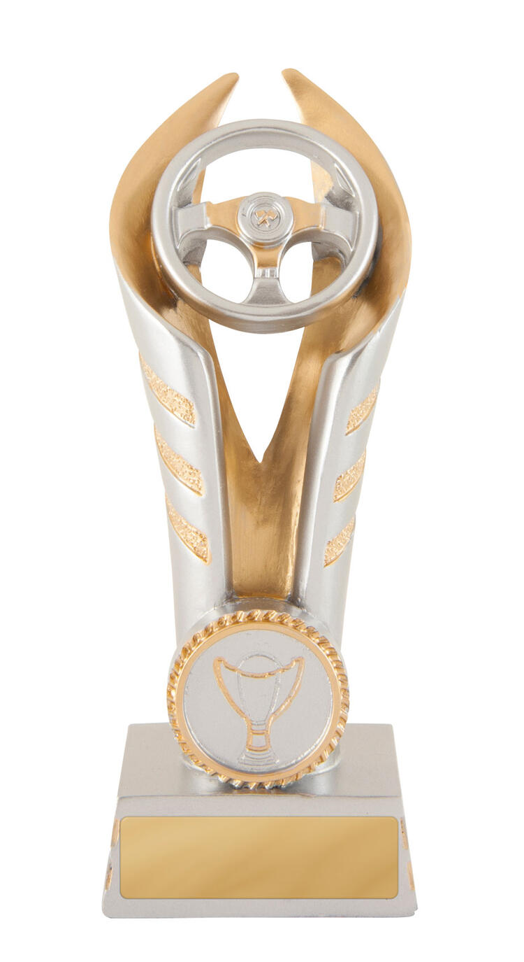Showcasing a striking steering wheel design, this motor sports trophy is crafted for memorable motorsport recognition. Made from resin, it stands securely on a round base with a 25mm centre. Available in multiple sizes, it is ideal for racing trophies, safe driving awards, or instructor achievements.