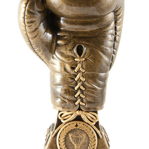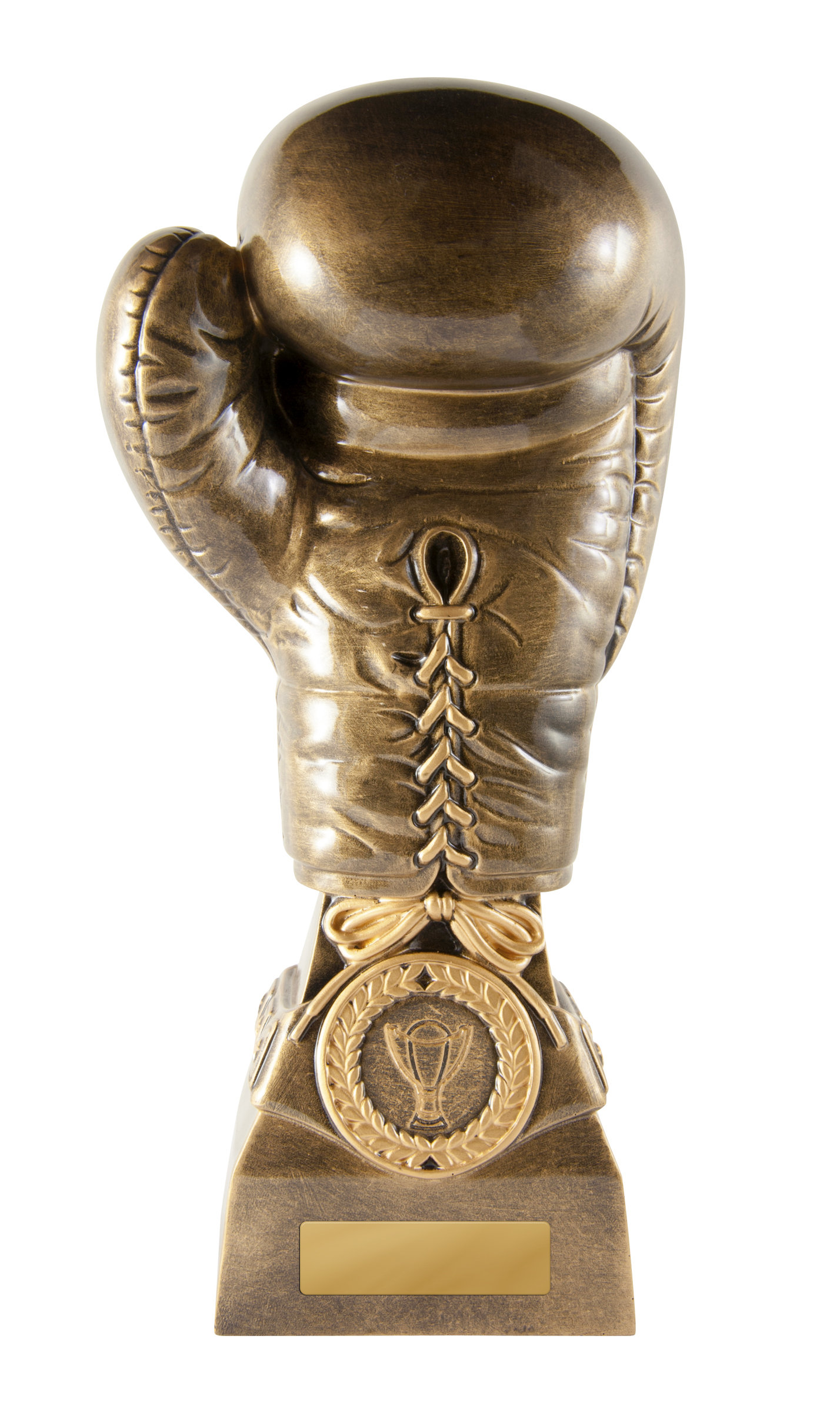 This boxing glove trophy stands out with its striking gold finish, capturing the essence of boxing achievement. The detailed glove sits atop a pedestal, accentuated by a laurel wreath that symbolises victory and dedication. Crafted for durability and distinction, this boxing trophy offers a professional and memorable way to recognise outstanding performance in the ring.