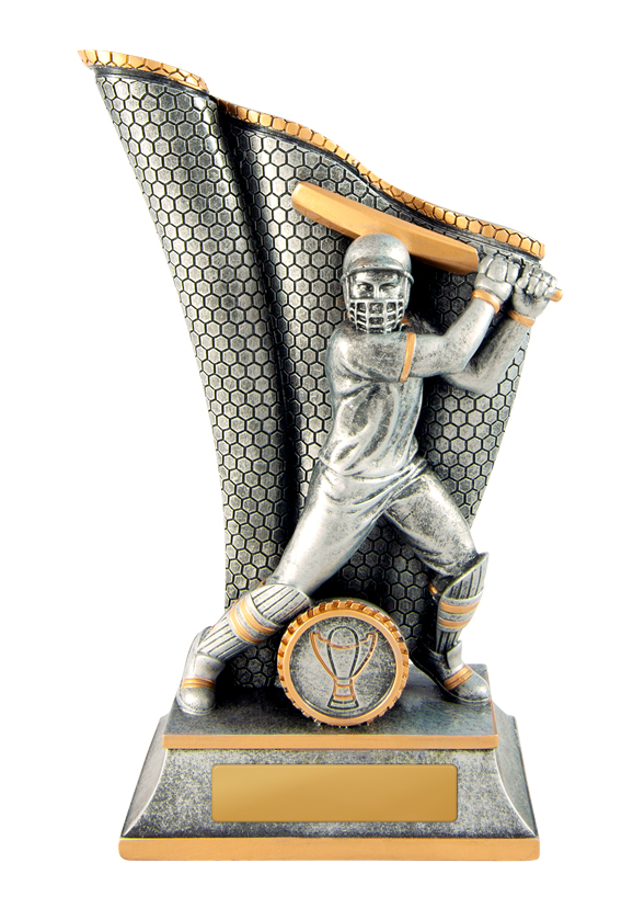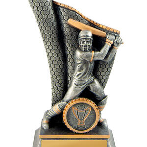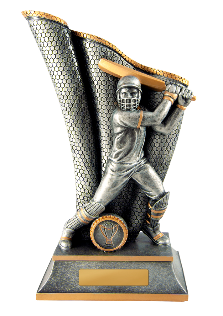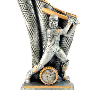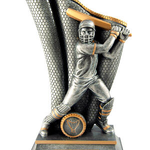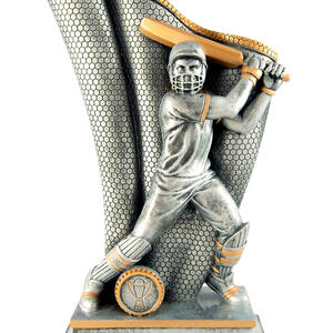 This cricket trophy from the Wave Series features a striking male batsman in full action, with intricate detailing in the bat and protective gear. Finished in antique silver and gold resin, it offers a professional and memorable way to honour sporting achievement.
