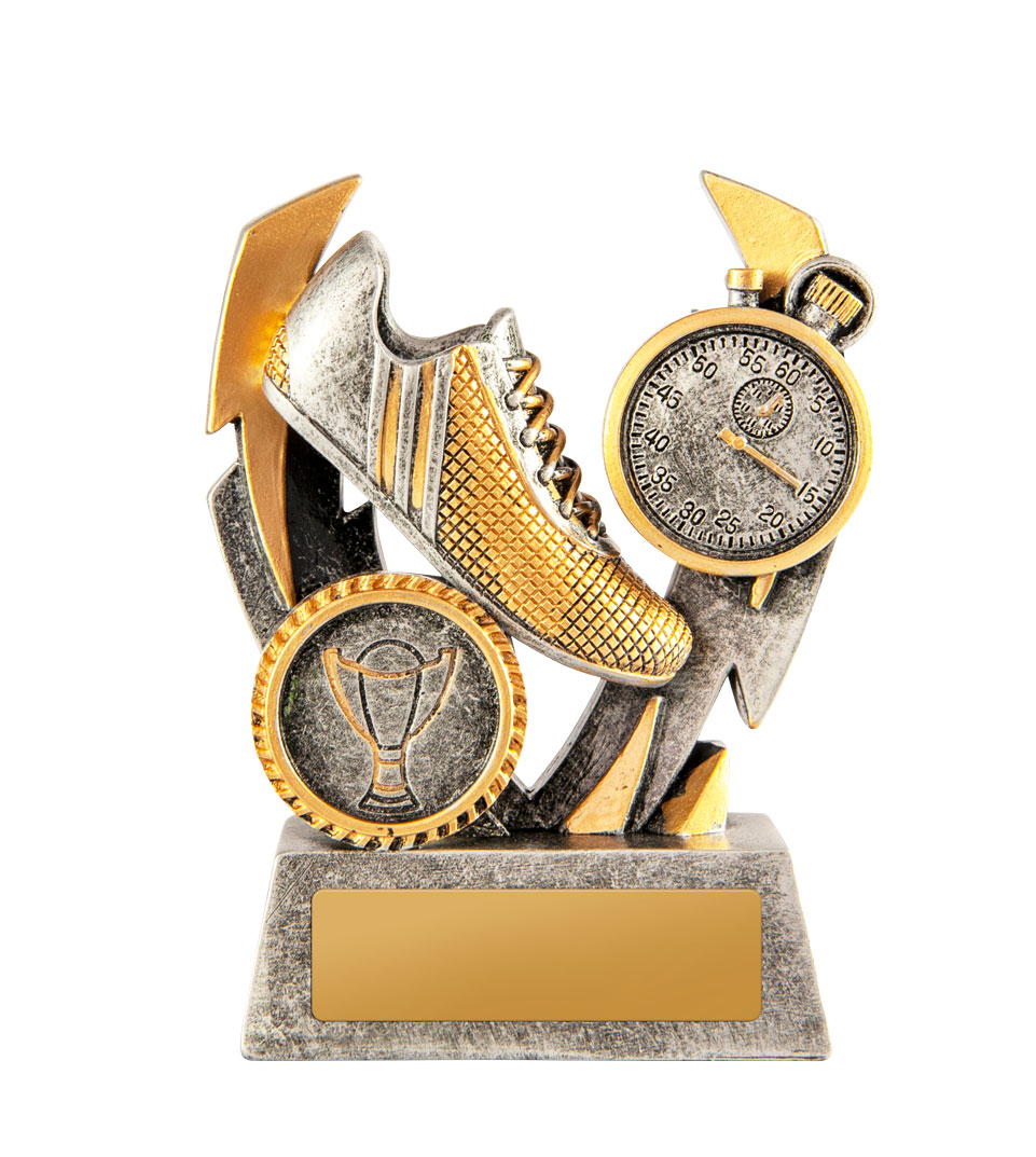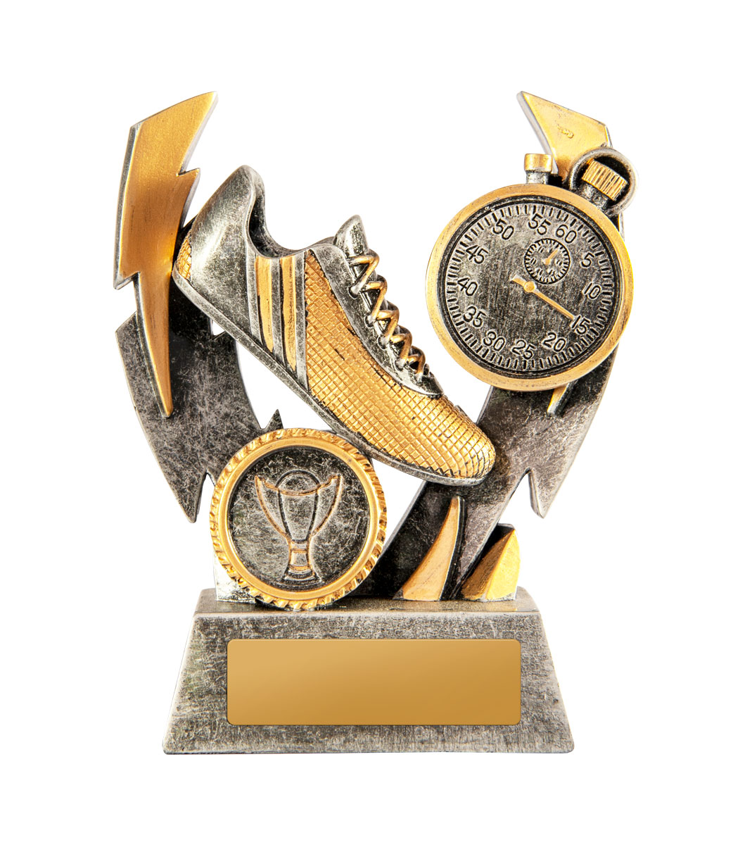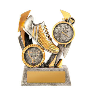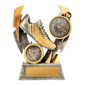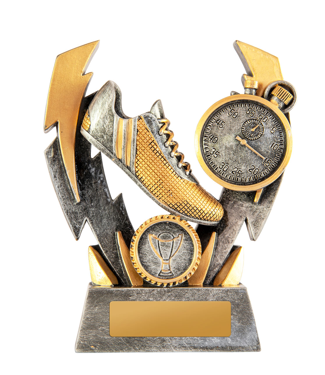 Crafted to recognise achievement in athletics, this trophy features a striking combination of a running shoe, stopwatch, and dynamic lightning bolt. It is designed for lasting recognition at competitions and school events. Perfect for presentations, it offers an elegant space for personalisation.