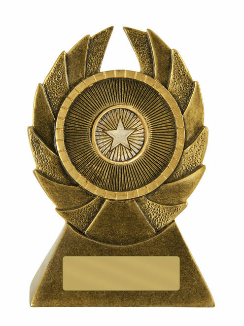 A traditional resin trophy with a textured starburst pattern, ideal for a wide range of sports and activities. Choose from a standard sport centre or add your own custom printed logo to personalise the award for your club or event.