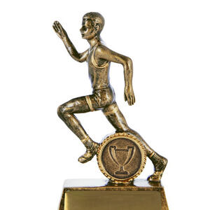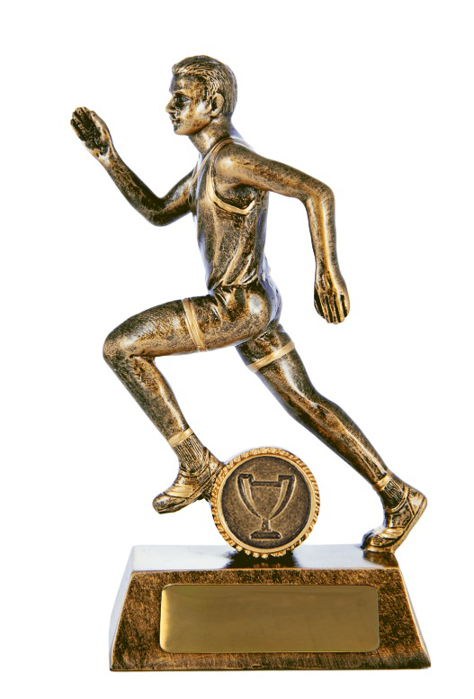 This elegant trophy captures the energy of athletic achievement with a detailed running figure poised above a sturdy rectangular base. The metallic finish and circular emblem featuring a trophy icon create a distinguished presence, making it an ideal choice for recognising excellence in running events. Crafted for durability and distinction, it stands out among athletics trophies and sports trophies as a trusted symbol of accomplishment.