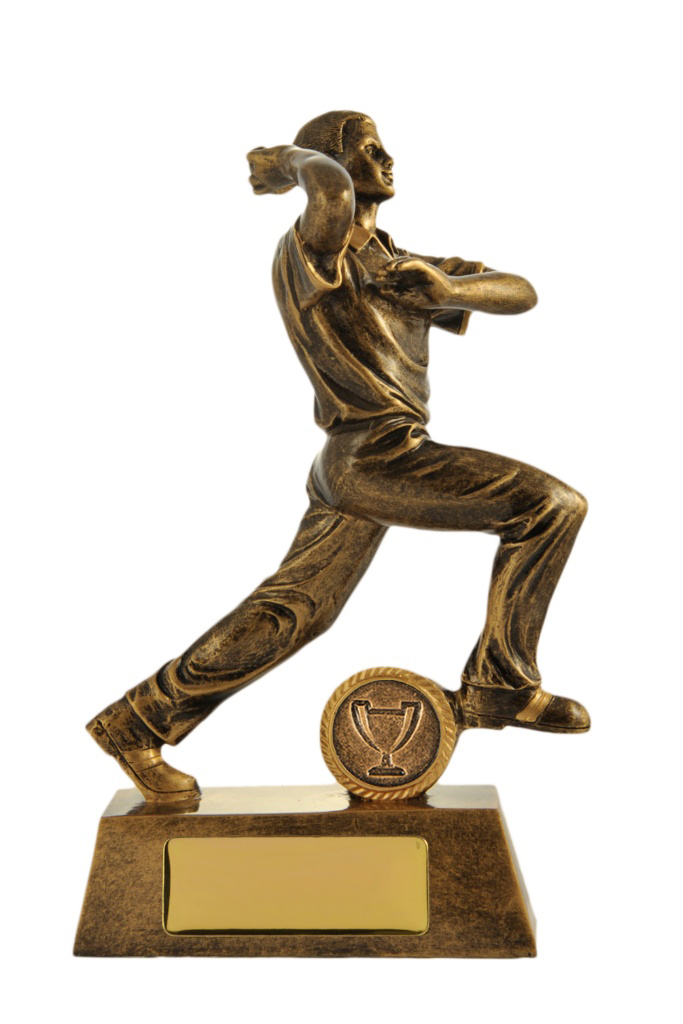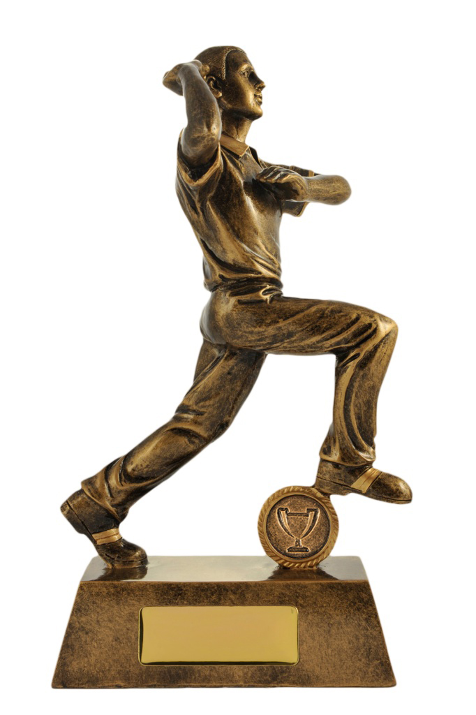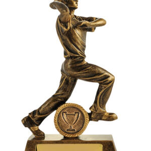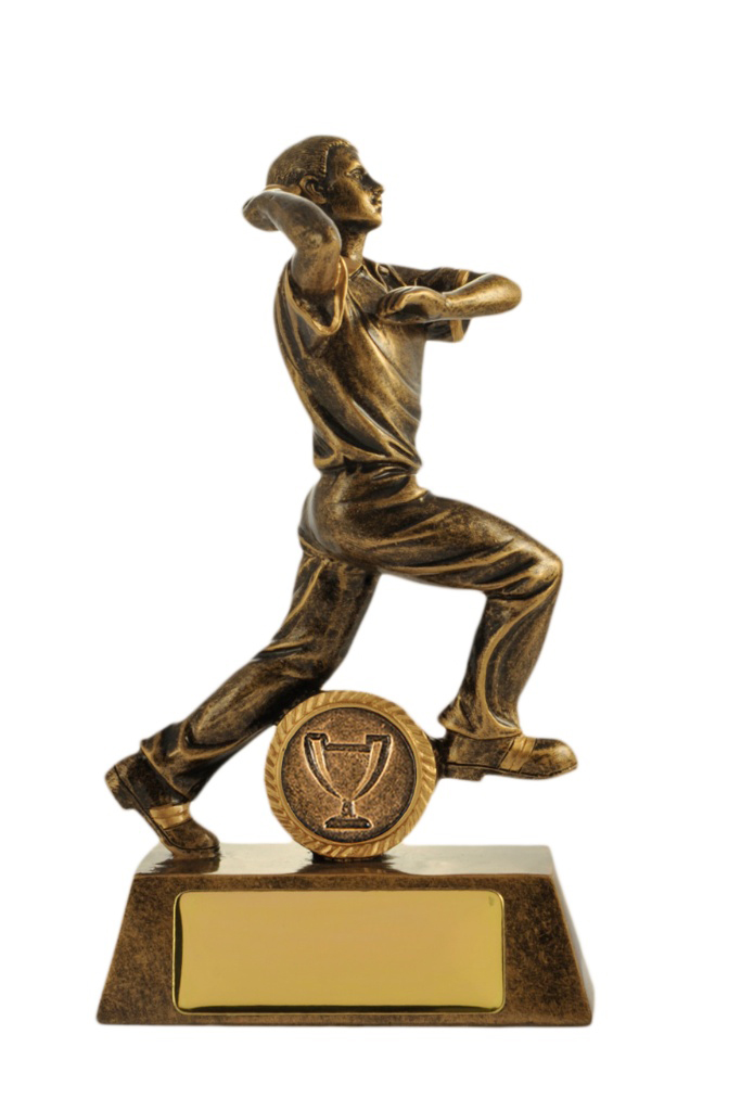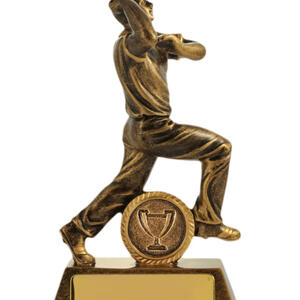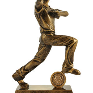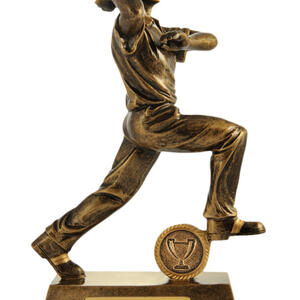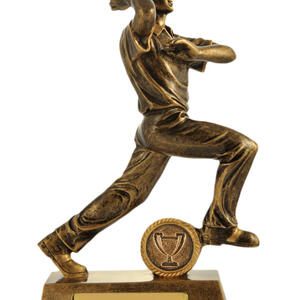 This cricket trophy is crafted to honour skill and dedication on the field. Showcasing a bowler in mid action, the design celebrates precision and movement, making it an ideal cricket bowler trophy for tournaments and individual recognition. Finished in elegant gold with a smooth, durable surface, it offers a reliable and memorable symbol of achievement.
