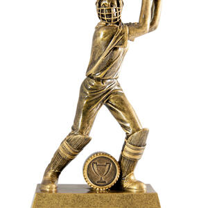 Celebrate cricketing excellence with this elegant batting trophy, featuring a dynamic female player in mid swing. Perfect for cricket trophies presentations or as a memorable MVP batting trophy at club, school, or community events.