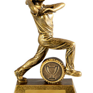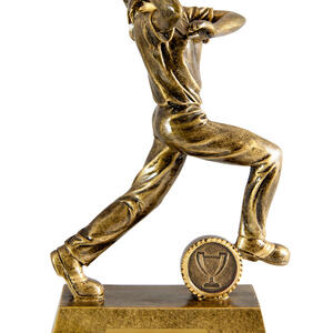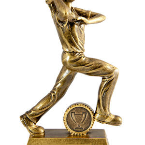 Celebrate performance on the cricket pitch with this elegant bowler trophy, crafted to recognise the skill and commitment of female bowlers. Featuring a dynamic figurine in a powerful bowling pose, this gold finished award showcases the artistry of cricket trophies.