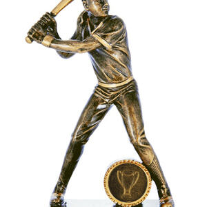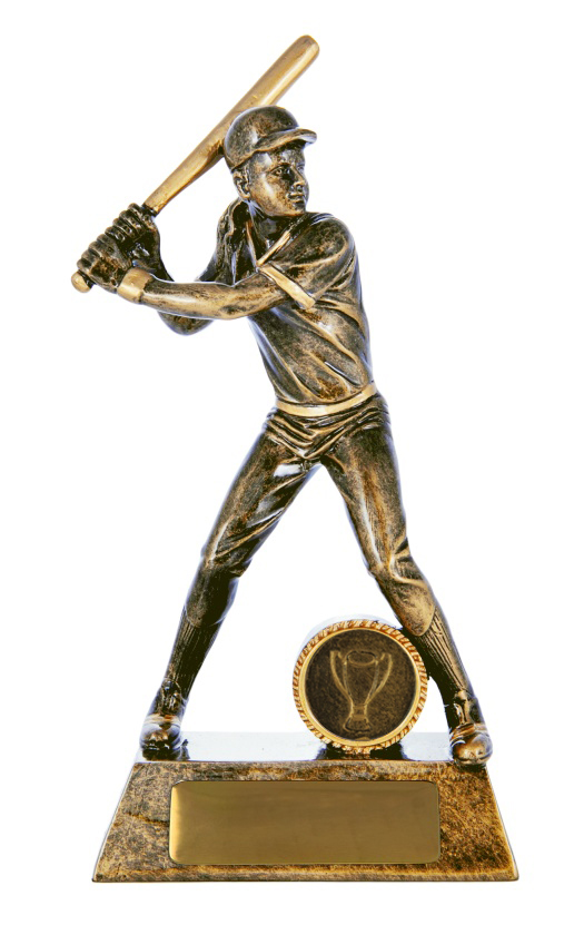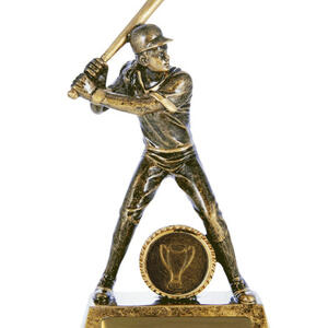 Celebrate dedication on the diamond with this elegant baseball trophy or softball trophy. Crafted in gold and brown, it features a dynamic figurine of a batter poised for action atop a sturdy rectangular base. The resin construction ensures durability, while a blank plaque allow for personalised recognition of sporting achievement.
