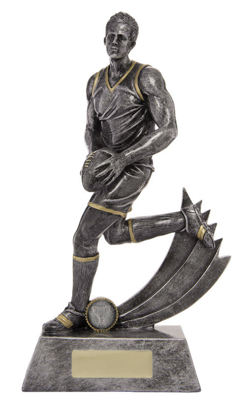 Celebrate outstanding achievement in Aussie Rules football with this elegant trophy, crafted for female athletes. Featuring a dynamic action pose and highlighted by silver and gold tones, it stands out with its detailed figurine and multi star accents.