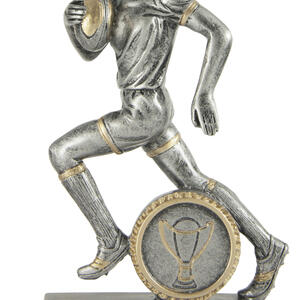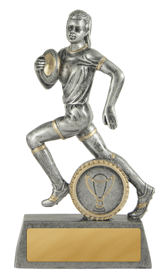 Celebrate achievement on the field with this refined addition to the rugby trophies range. Showcasing a female rugby player in antique silver with gold highlights, this trophy is crafted from resin and set on a solid rectangular base.