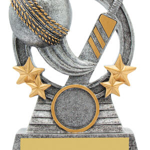 Celebrate cricketing achievement with this elegant cricket trophy, featuring a refined silver and gold finish. The design showcases a cricket bat, ball, and stars, all presented on a sturdy base. Crafted with a metallic touch, this trophy brings a memorable and professional recognition to standout performances in any cricket event.