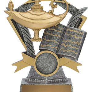 Celebrate scholastic achievement with this distinguished academic trophy, crafted in rich gold and silver tones. Featuring a classic lamp and open book design, its resin build symbolises enduring knowledge and commitment to learning. A refined plaque area offers space for personalisation, making this an ideal choice for recognising academic excellence.