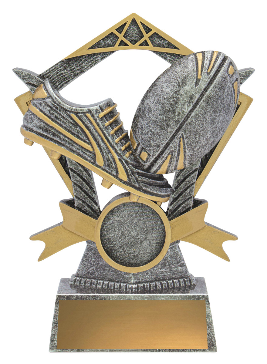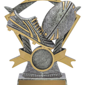 Crafted to embody the intensity and tradition of rugby, this rubgy trophy features a striking gold and silver finish with a rugby ball and cleated shoe at its core. The robust resin construction ensures durability and a lasting impression. Designed for both rugby league and union achievements, it delivers a memorable and elegant recognition for outstanding performance.