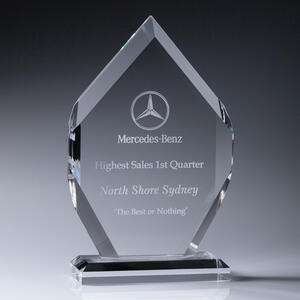 This contemporary clear acrylic award features a soft curved top and striking green tinted edge. The subtle colour detail adds sophistication while maintaining a clean, professional look. Perfect for tourism, environmental, or counity awards.