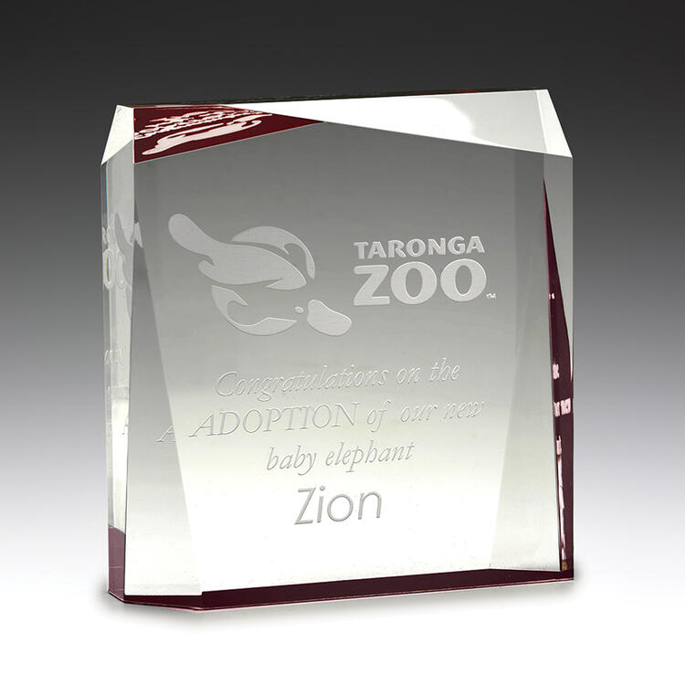 This acrylic award blends clarity with striking red accents, featuring a sleek rectangular profile with angled edges for a refined presentation. Crafted from acrylic, its commemorative design is enhanced by precision engraved text and logo options. Ideal for recognising achievement with a lasting impression, this award offers an elegant tribute suited to both professional and celebratory settings.