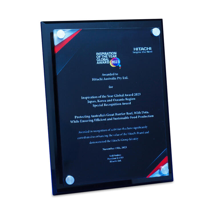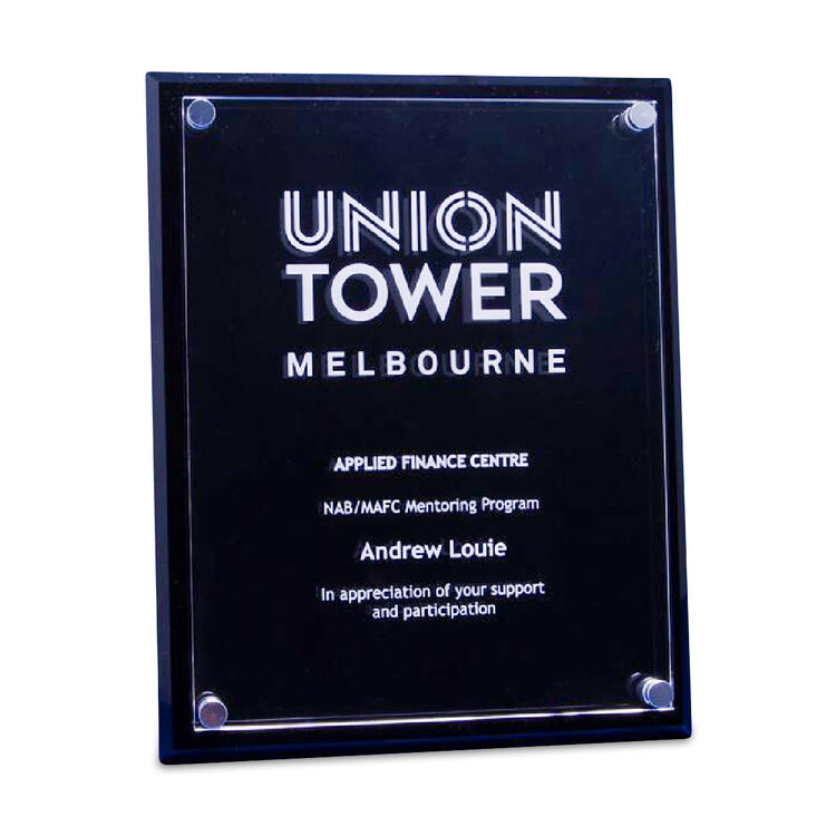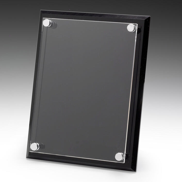 This premium Black acrylic plaque with a floating clear acrylic front is a sleek contemporary design, ideal for modern presentations and corporate awards.