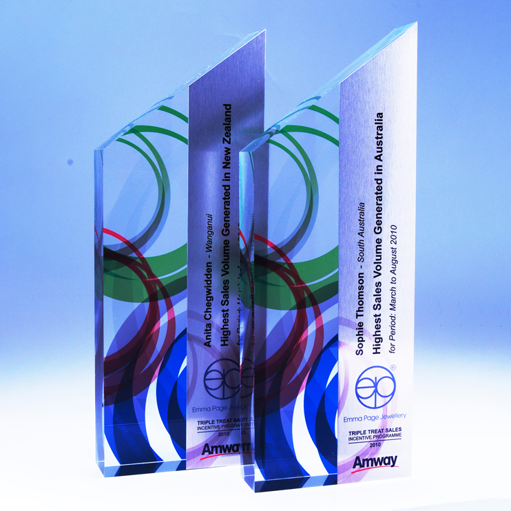 Form Acrylic Awards feature layered acrylic construction to create striking depth, colour, and texture. Each piece can be custom etched, frosted, or printed, showcasing your design with a refined, contemporary look that captures movement and creativity.
