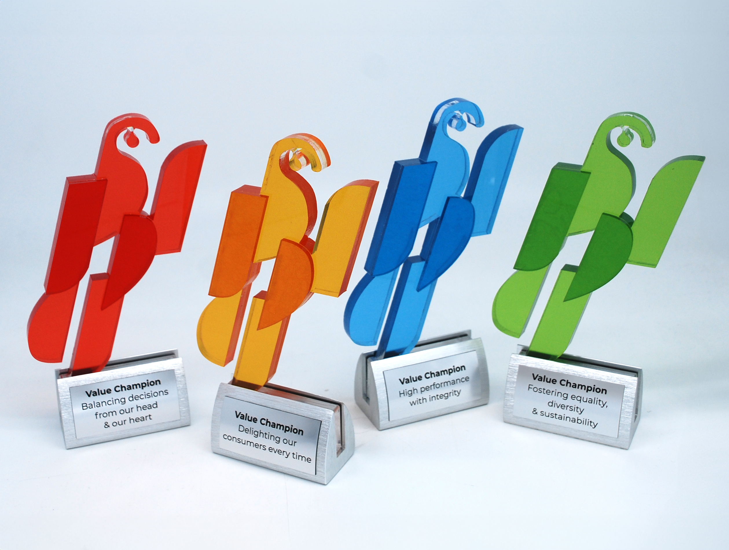 The Malleables offer design flexibility and fast production. From our cost-effective Custom Acrylic Malleables to our premium thick Profile Cut styles, we can shape unique awards to your exact specifications. Add vibrant opaque or translucent colours, engraving, or print to enhance your custom design and create a truly standout presentation.