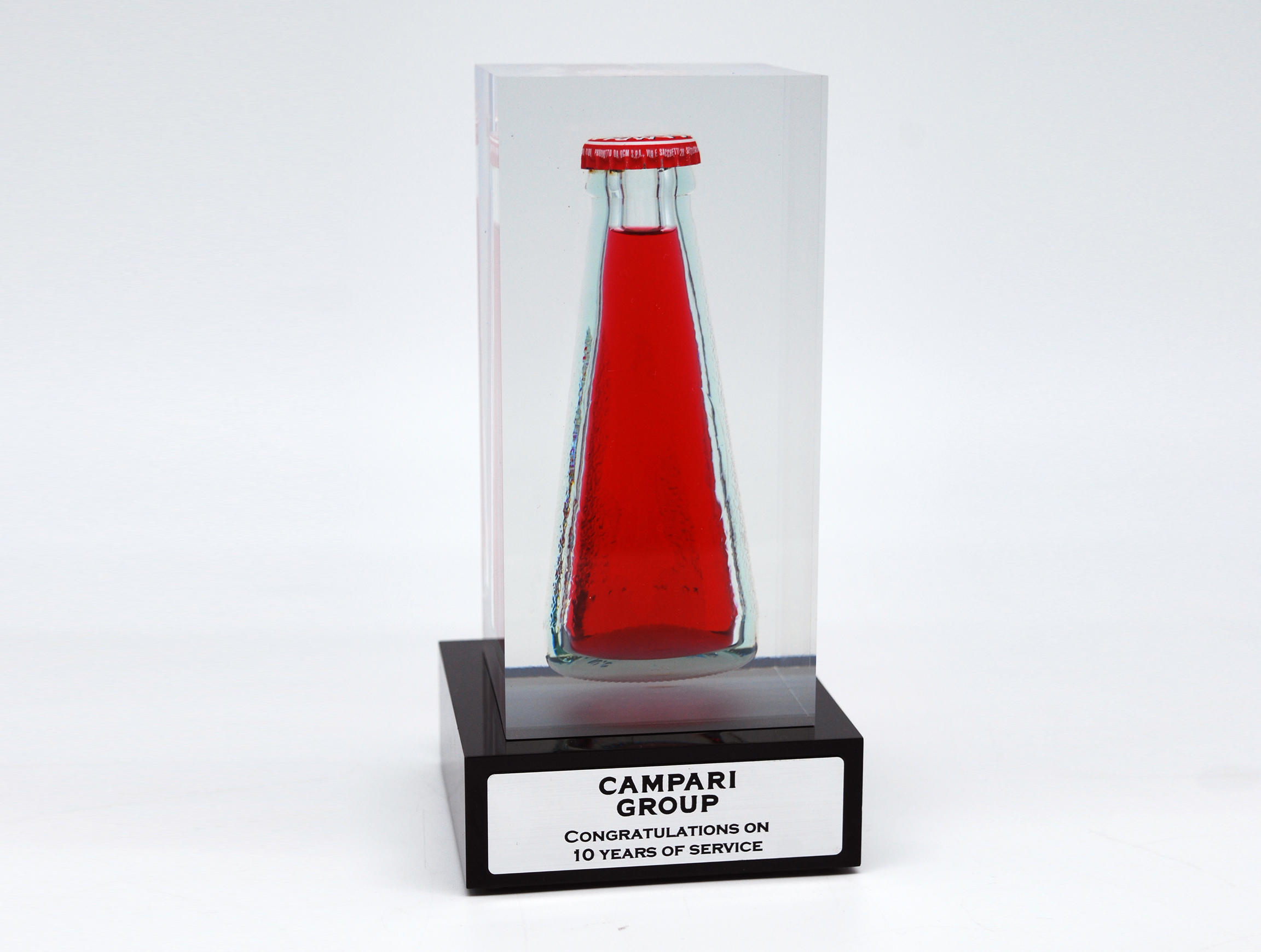Acrylic embedments are also used to create unique trophies where 3D objects, text, or images appear “suspended” within the block. Perfect for corporate awards, commemorative gifts, or creative promotional pieces.