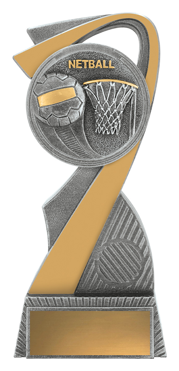 Celebrate netball achievement with a contemporary trophy crafted to make moments memorable. The Arclight Netball Trophy features an elegant abstract form, with a circular top and gracefully curved base in striking silver and gold. Highlighting a netball and hoop motif and the word 'Netball, ' this durable piece stands out among netball awards as a professional choice for recognition.