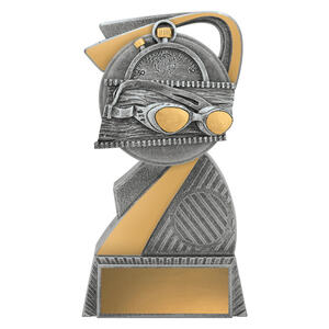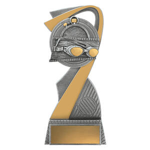 The Arclight Swim Trophy presents a modern geometric design in sleek metallic tones. With optional custom logo space, itÂ’s a contemporary award suited to swimming meets, school carnivals, and club achievements.