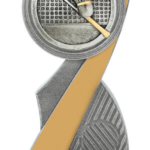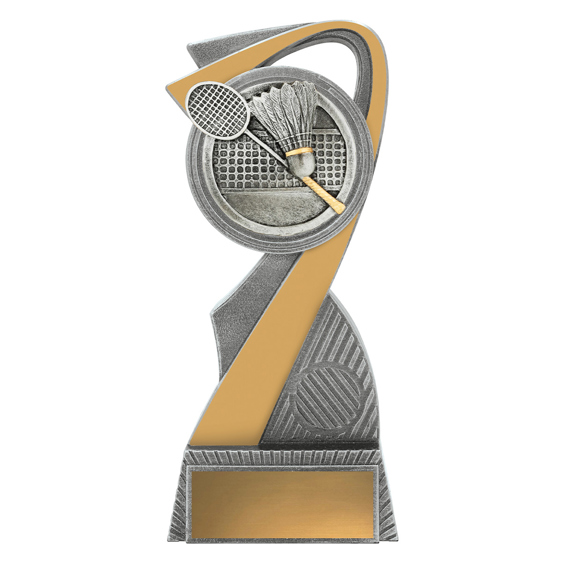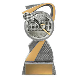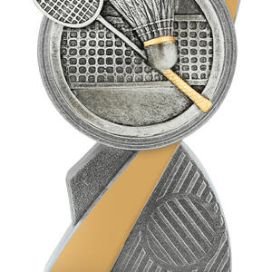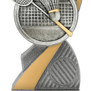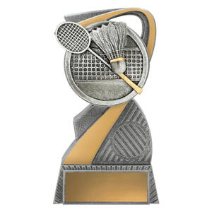 This stylish Badminton Award combines sleek silver and gold finishes with a detailed racquet and shuttlecock emblem. Made from resin, it stands as a modern and durable option for recognising performance in badminton competitions at all levels.