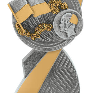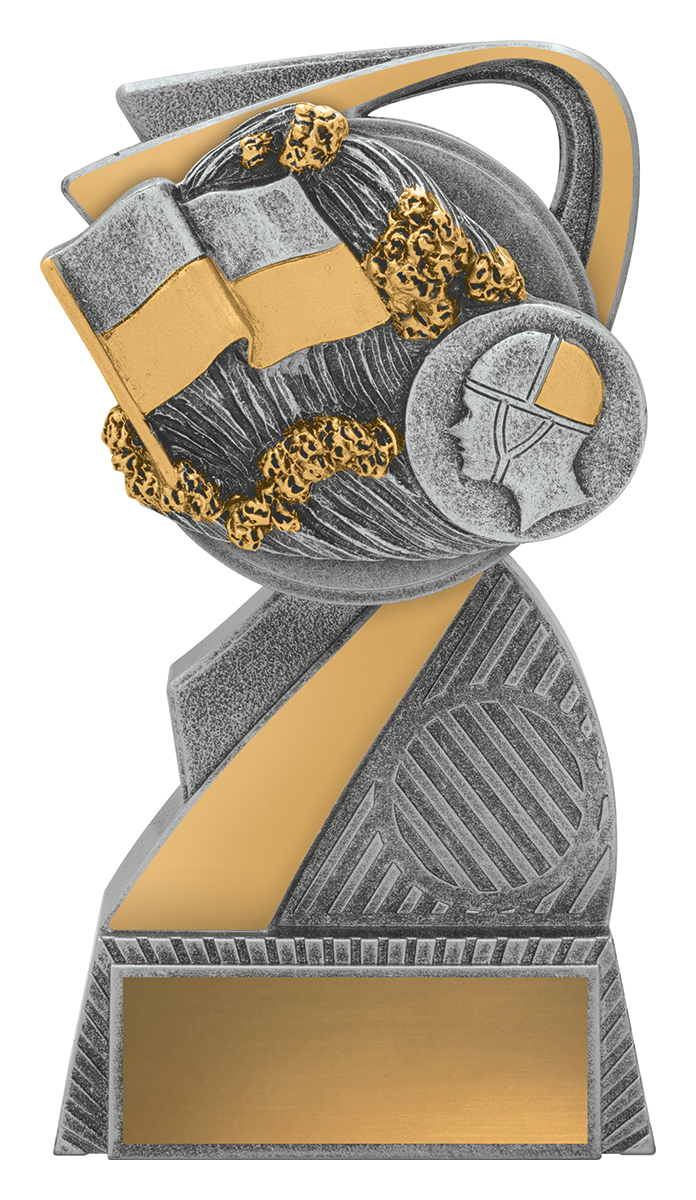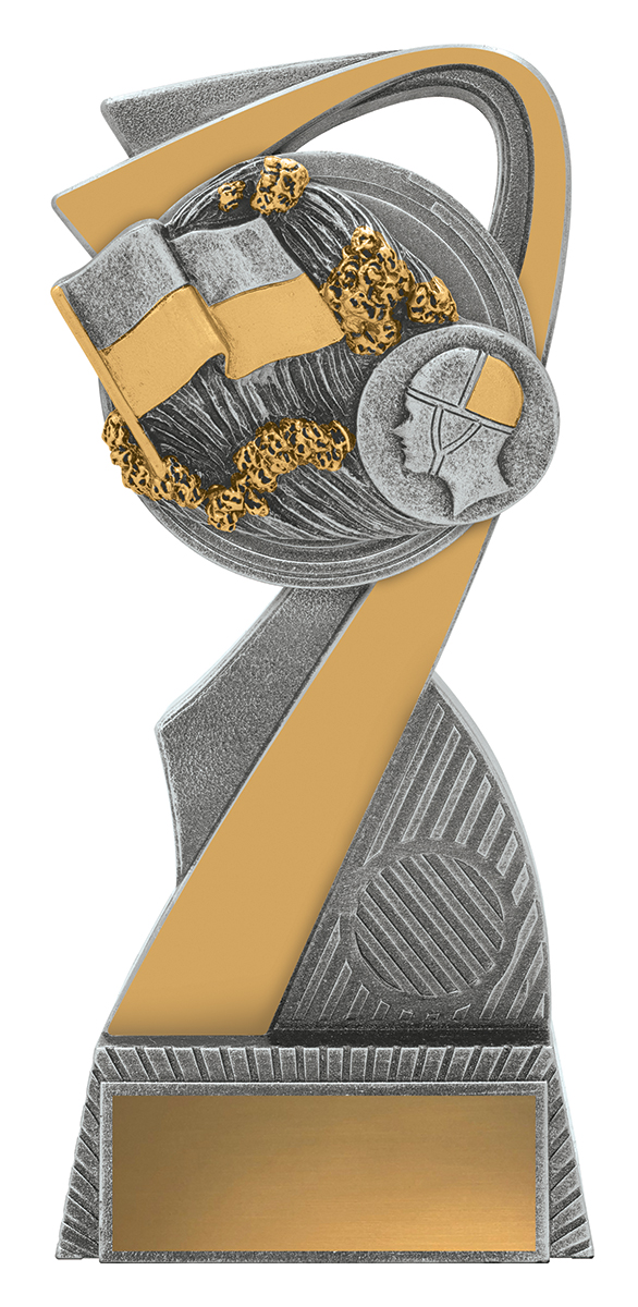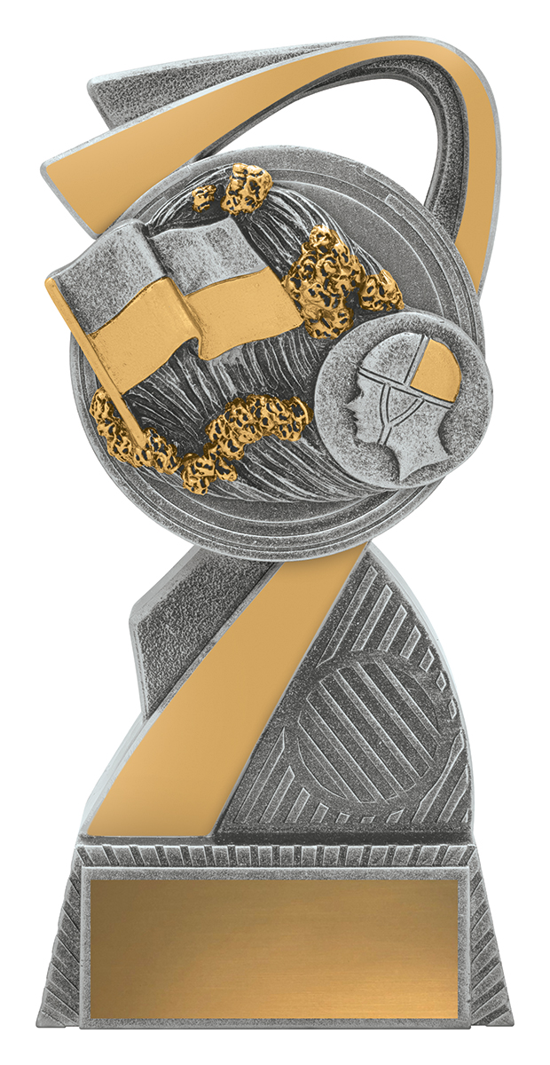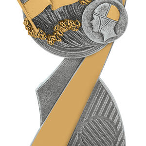 This abstract metal trophy makes a striking impression with its graceful curve, combining gold and silver finishes for a refined, contemporary look. Featuring a sculpted book and helmeted profile, it celebrates intellectual dedication and commitment within the context of surf lifesaving awards. Precision crafted for durability and quality, it serves as a meaningful recognition of achievement.