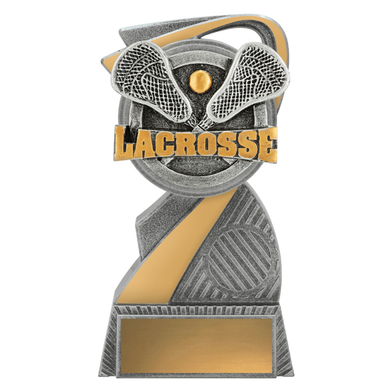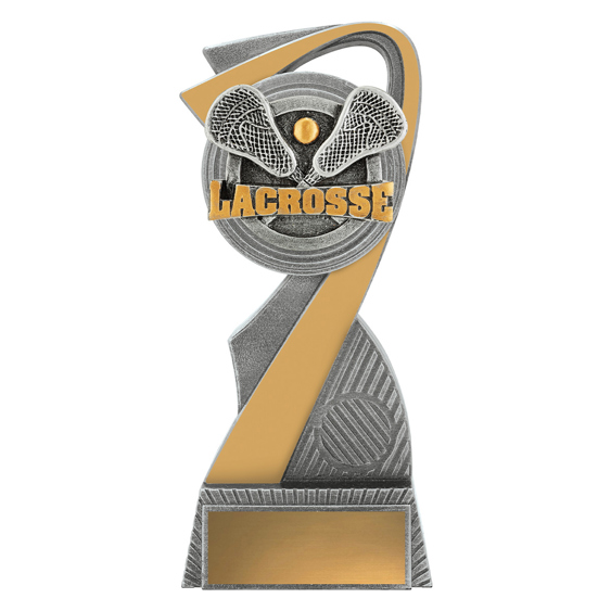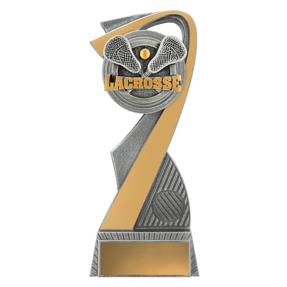 The Arclight Lacrosse Trophy delivers sleek metallic geometry that captures speed and intensity, with room for a logo insert.