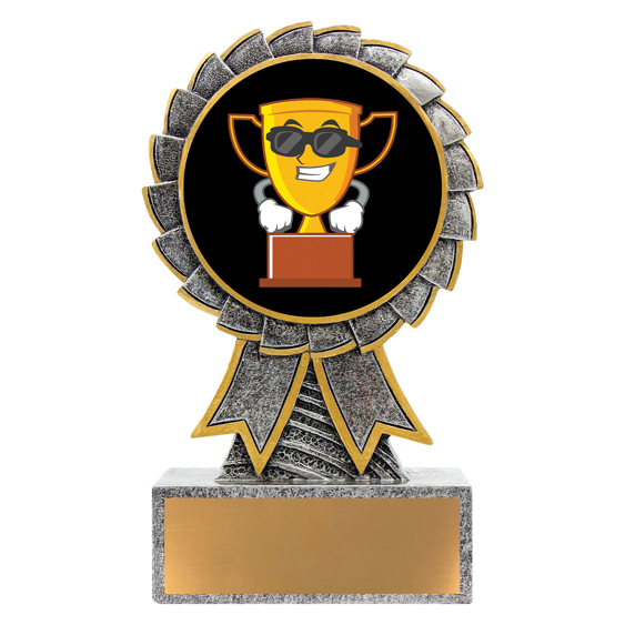 Bring some fun to your presentations with this playful trophy featuring a smiling cup character. Finished in antique silver and gold, its perfect for novelty awards and light hearted events.