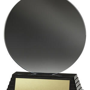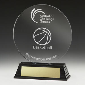Celebrate success with this bold star shaped acrylic award, mounted on a stepped black base with a gold front plate for custom engraving. The clean cut design and polished edges make it a standout piece for talent recognition, performance awards, or event trophies.