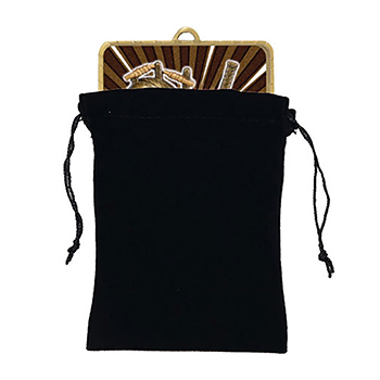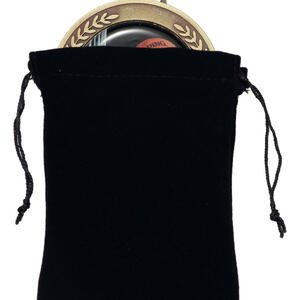 This elegant medal bag combines a classic black palette with the soft texture of velvet or similar fabric. Crafted in a refined rectangular shape, it features a secure drawstring closure to keep medals protected and presentable. Ideal for any occasion where achievements deserve to be stored and displayed with care. The bag is 115mmH x 85mmW. Fits up to 65mm diam. Medal or a rectangle medal 65mmx75mm.