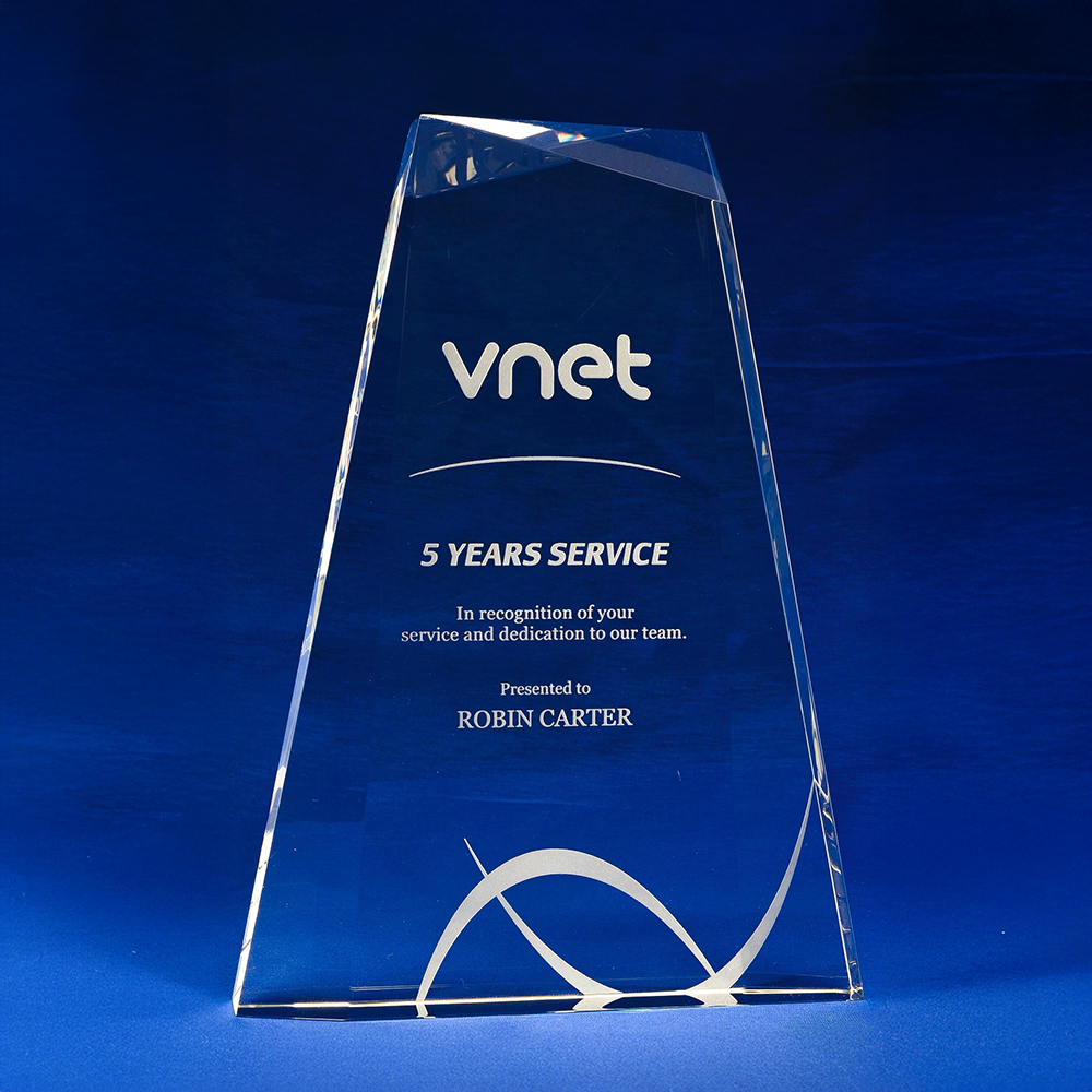 Premier Awards is the leading choice for crystal trophies, combining expert craftsmanship, precision engraving, and modern design. Our standout sandblast engraving process creates a crisp, high-contrast finish far superior to inferior laser engraving, ensuring a high-quality, professional look.