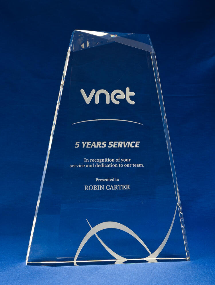 We use Superior Sandblast engraving or high-resolution full-colour printing to achieve striking results on our glass awards and trophies.