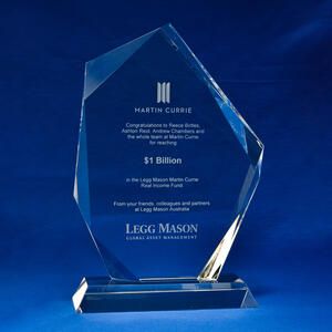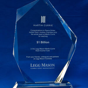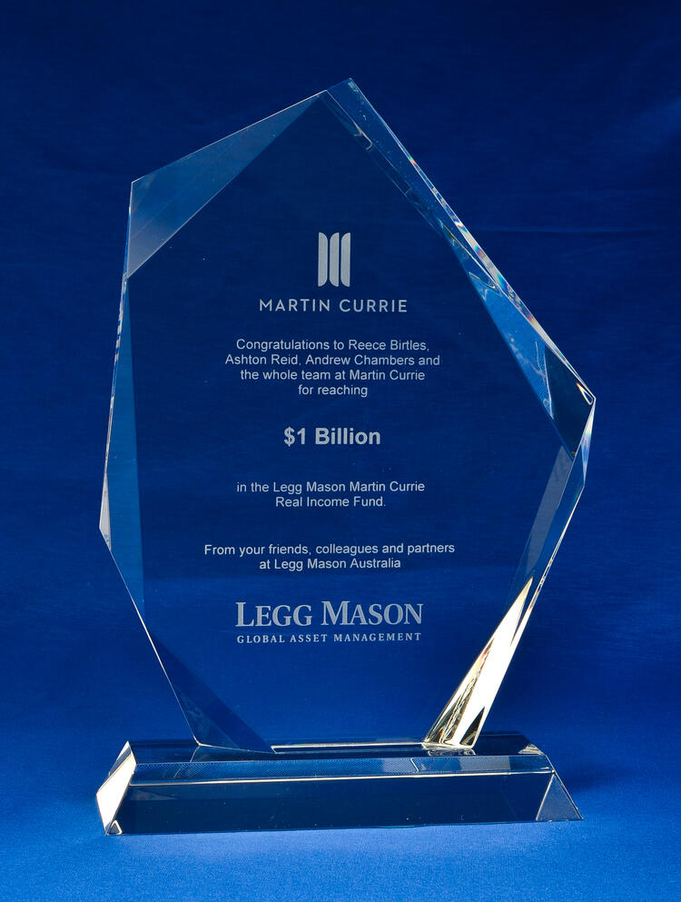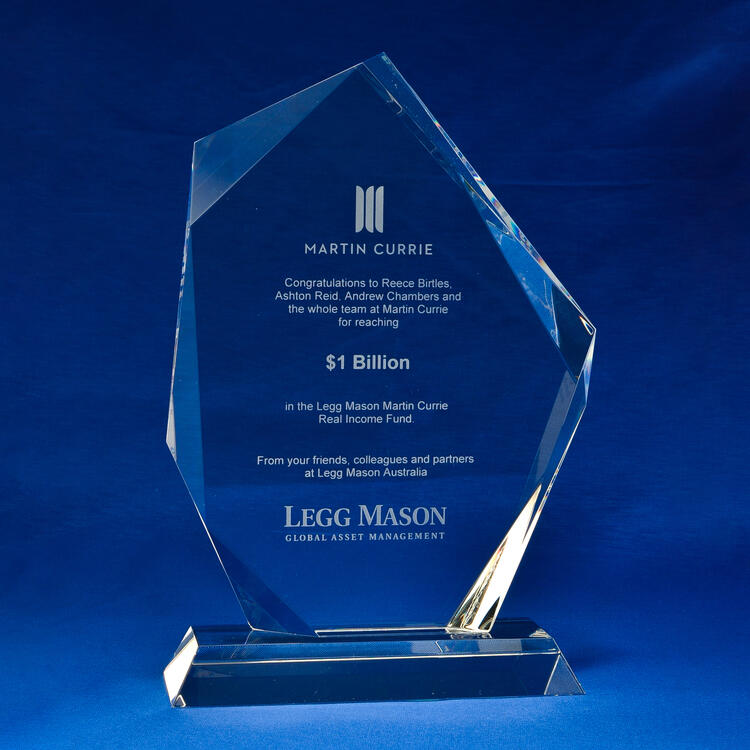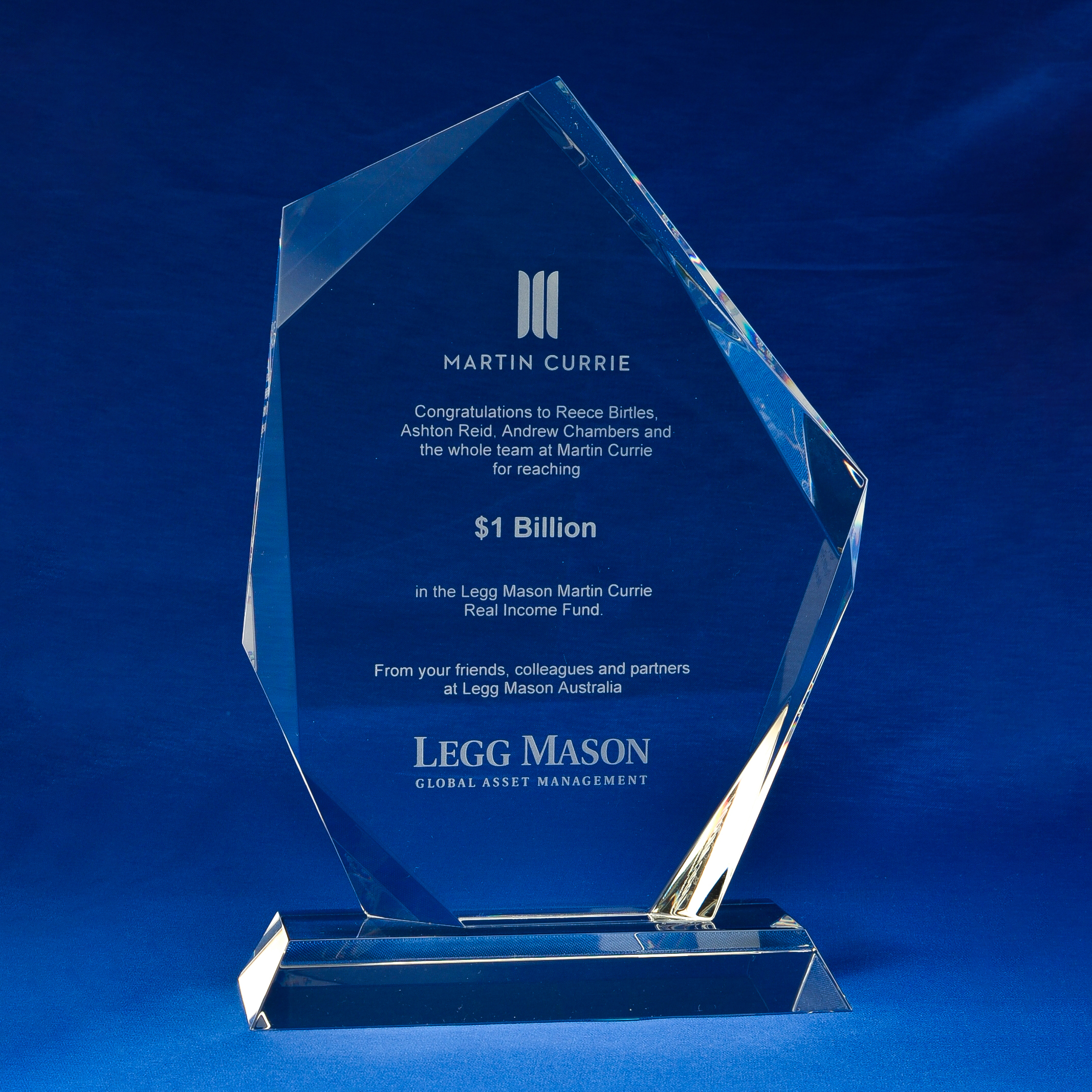 We use Superior Sandblast engraving or high-resolution full-colour printing to achieve striking results on our glass awards and trophies.