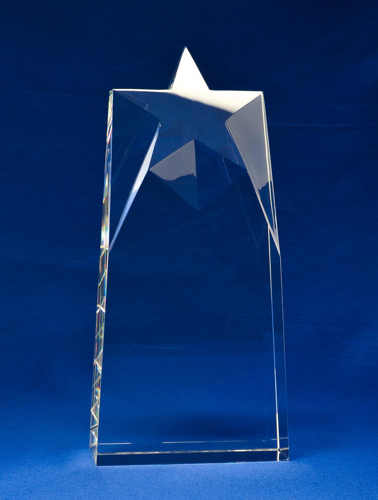 We use Superior Sandblast engraving or high-resolution full-colour printing to achieve striking results on our glass awards and trophies.