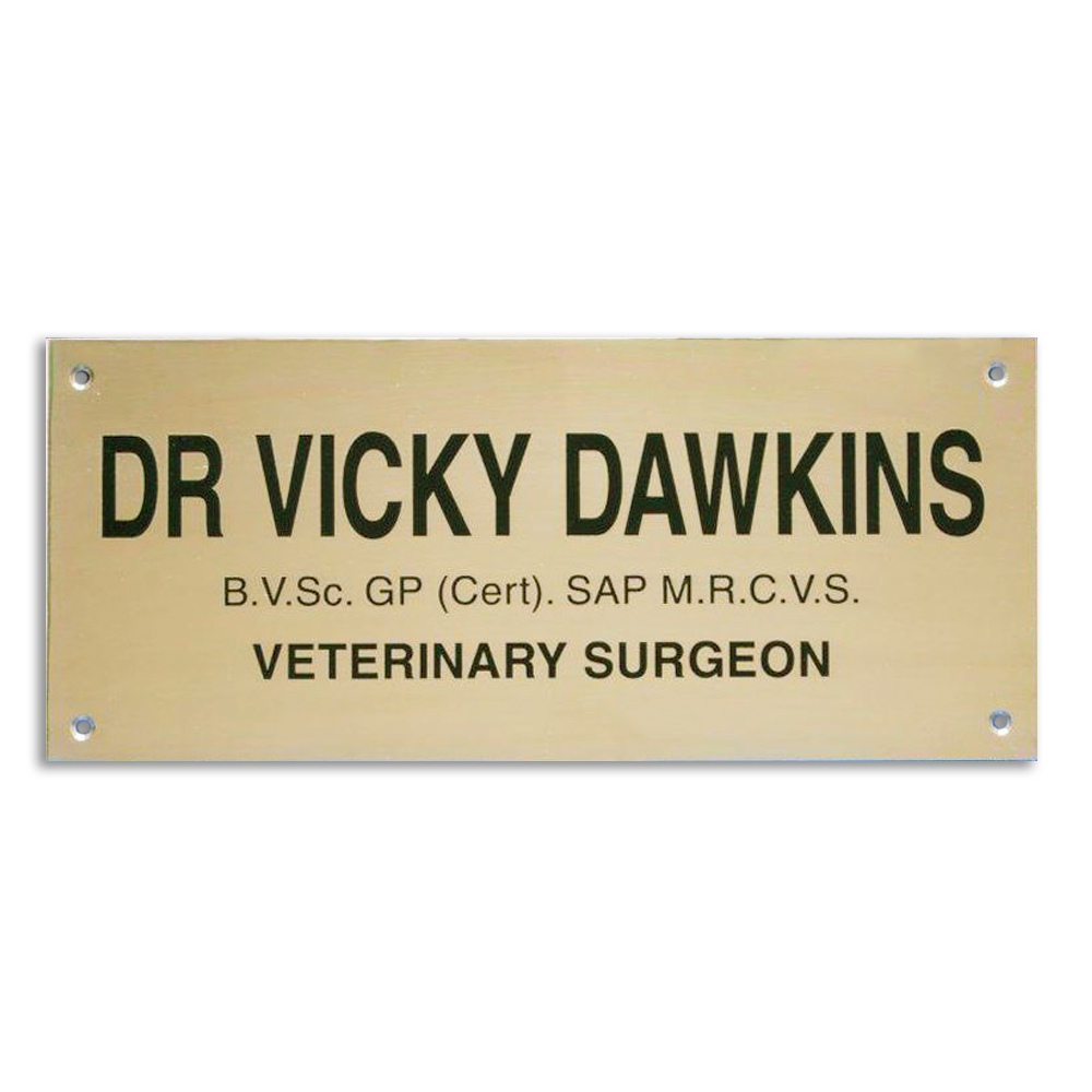 The brass finish creates a distinguished appearance, while protective coatings help maintain its brilliance against tarnish and weathering. Perfect for doctors’ clinics, veterinary surgeries, consulting rooms, and hospitals, these plaques combine durability with classic style.
