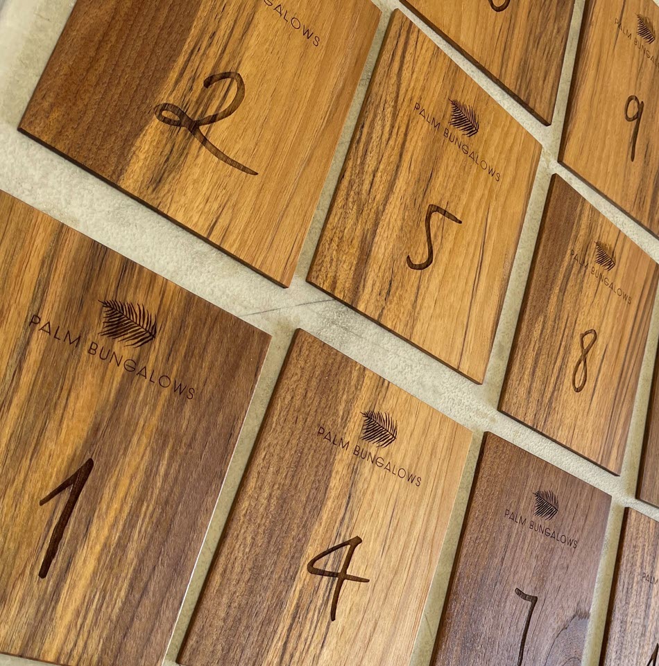 These custom signs were crafted from premium Australian hardwood and laser-engraved to achieve precise, detailed lettering while showcasing the natural beauty of the timber grain. Produced for Palm Bungalows at Hamilton Island, the signs embody a rustic holiday style with unique character in every piece. To enhance durability and highlight the timber’s warmth, each sign has been carefully finished with Danish oil for long-lasting protection.