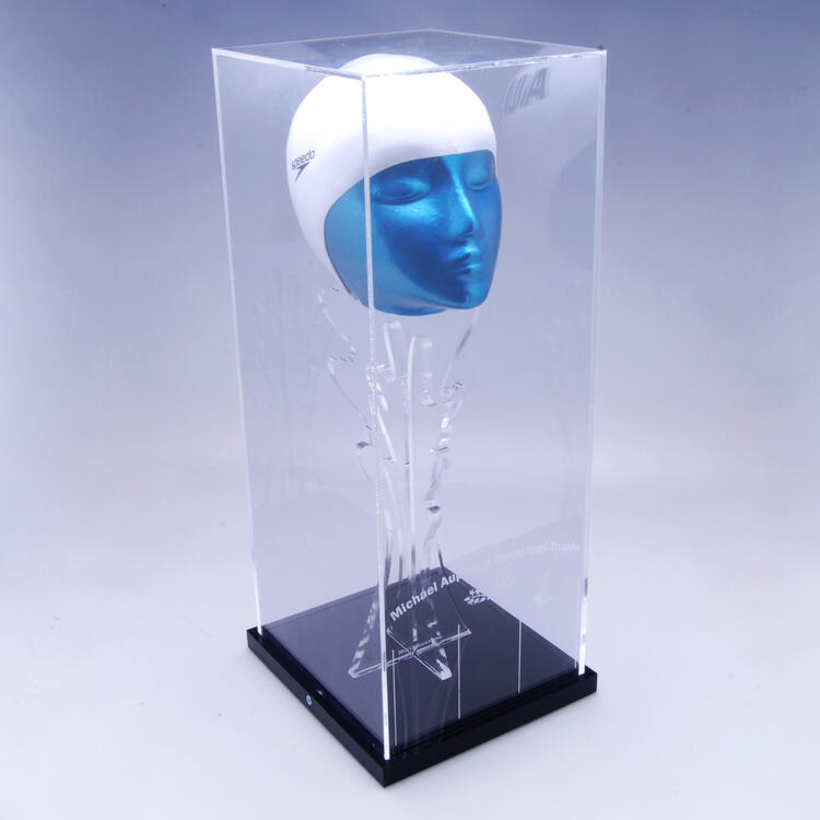 Our custom acrylic display cases are designed to showcase your items with clarity and style. Each case is made to your specifications from optically clear acrylic, available in thicknesses from 4.5mm to 10mm, depending on your size requirements. Bases are typically finished in sleek black acrylic, with premium options such as timber bases.