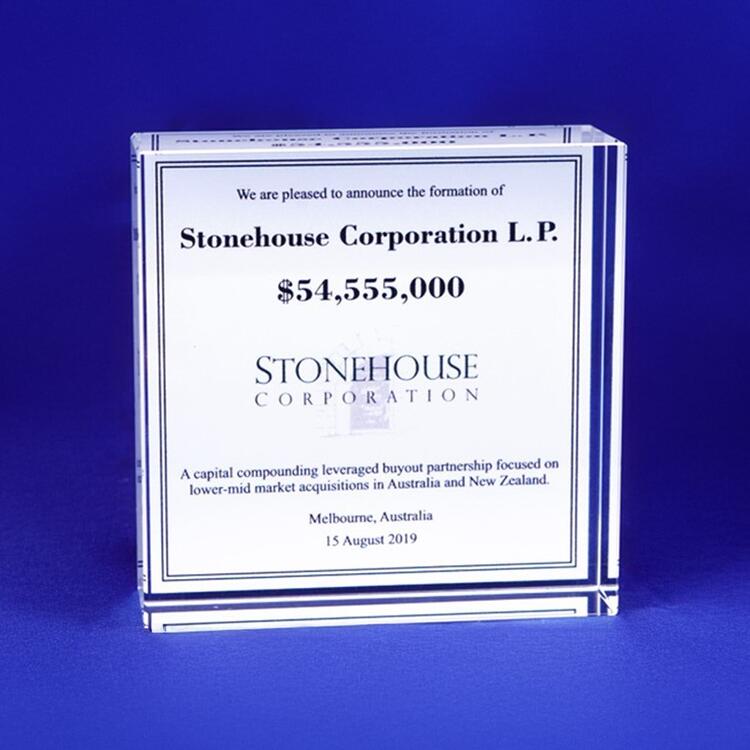 We use Superior Sandblast engraving or high-resolution full-colour printing to achieve striking results on our glass awards and trophies.