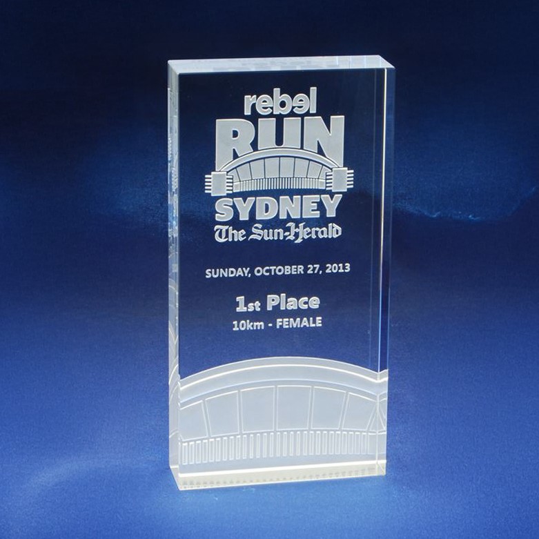 We use Superior Sandblast engraving or high-resolution full-colour printing to achieve striking results on our glass awards and trophies.
