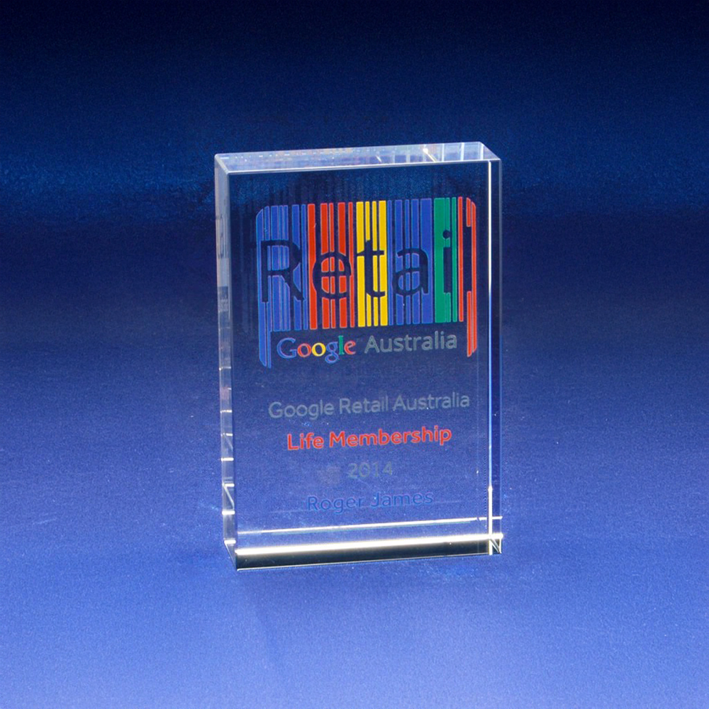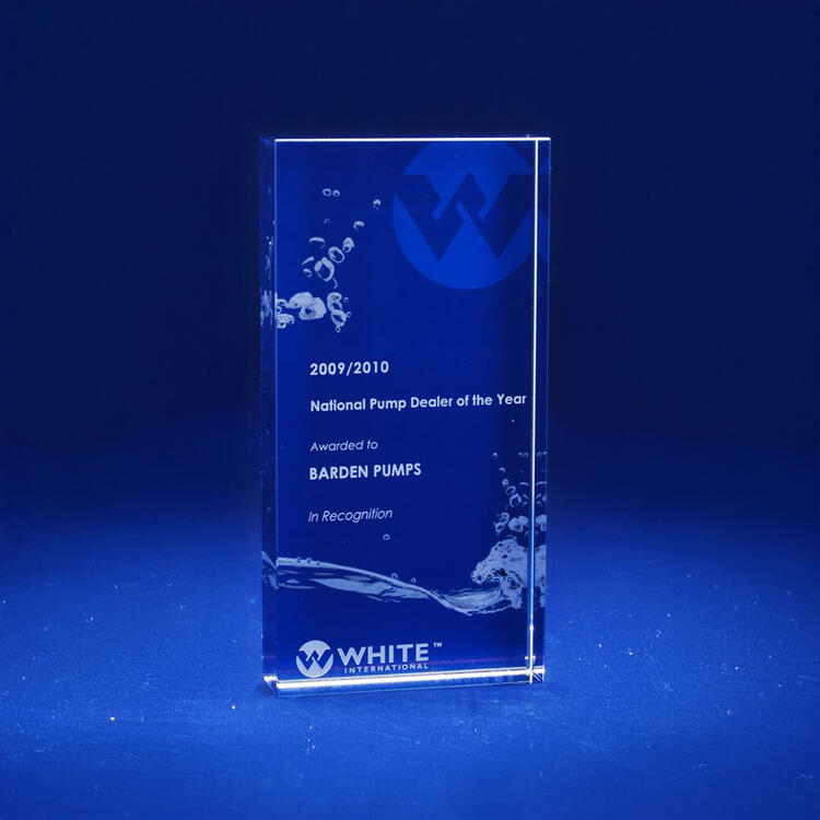We use Superior Sandblast engraving or high-resolution full-colour printing to achieve striking results on our glass awards and trophies.