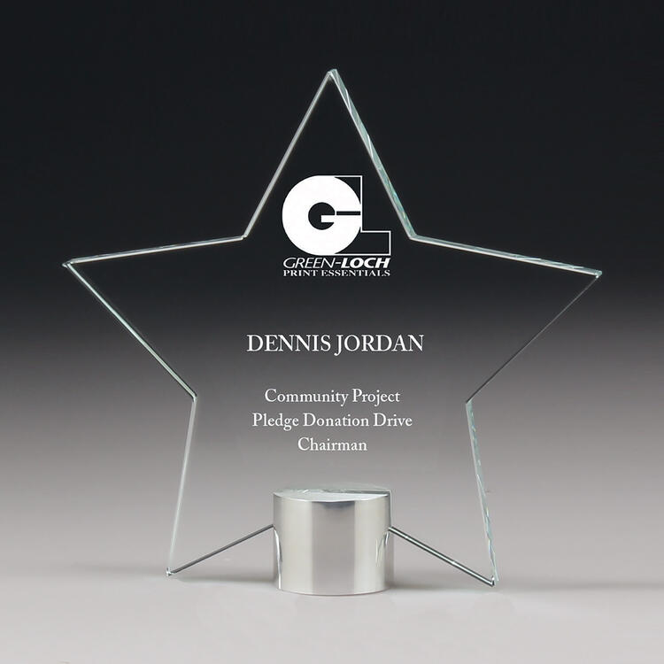 Glass trophies typically have a very slight green tinge, which can subtly affect the appearance of colour printing. In contrast, crystal trophies are completely clear.