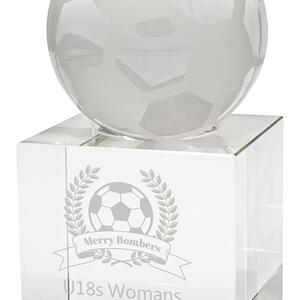 A striking choice for football recognition, this crystal trophy features a clear cuboid base crowned with a frosted white spinning football. The contemporary design and refined materials make it an ideal football league trophy, offering a lasting symbol of achievement and professionalism.